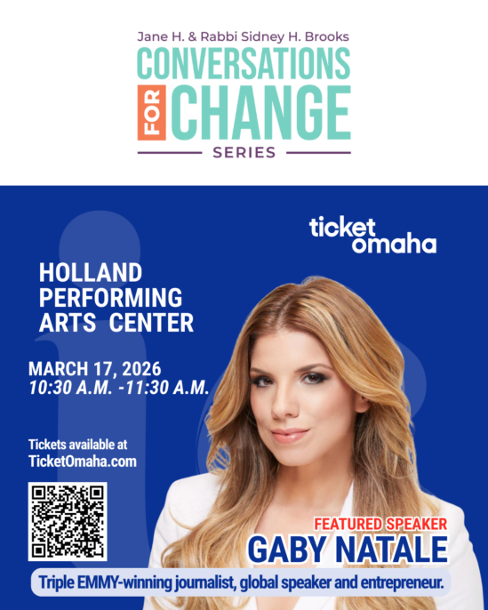 Inclusive Communities is proud to welcome Gaby Natale as the featured guest for the 4th Annual Jane H. & Rabbi Sidney H. Brooks Conversations for Change. A triple Daytime Emmy® Award–winning journalist, bestselling author, and leadership speaker, Natale is widely recognized for her groundbreaking work in media, entrepreneurship, and representation. Taking place at the Holland Performing Arts Center, this free, public event will explore what it means to lead with authenticity, embrace individuality, and redefine success in a rapidly changing world. Natale’s career spans global brands, iconic stages, and historic firsts, making her a powerful voice for inclusion, innovation, and courageous leadership. Conversations for Change honors the legacy of Jane H. and Rabbi Sidney H. Brooks creates space for meaningful dialogue that inspires action and strengthens community. The event brings Arts and Humanities thought leaders from around the world to Omaha to share how they use their platform to elevate their experiences around confronting prejudice, bigotry and discrimination to bridge cultural divides and strengthen communities. The series was established in 2022 and made possible by a gift from Miriam Brooks in honor of her parents, Jane and Rabbi Sidney Brooks. Conversations for Change debuted in 2023 with actor Kal Penn, and featured Bob the Drag Queen in 2024 and Emmy-winning actress and producer Storm Reid in 2025. On March 17, 2026, we will be welcoming triple Emmy-winning Journalist, Author and Motivational Speaker Gaby Natale! Tickets are FREE and available on the TicketOmaha.com website the official ticket provider for the Holland Performing Arts Center.